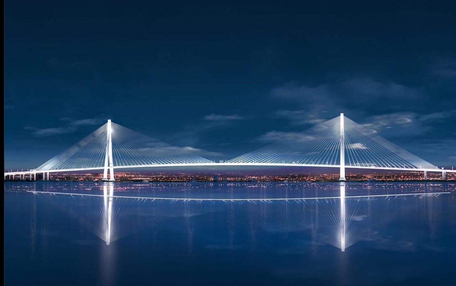 Above: American and Canadian Ironworkers meet on Friday, June 14, 2024 after the final edge girders are bolted in place, connecting the U.S. and Canada.
