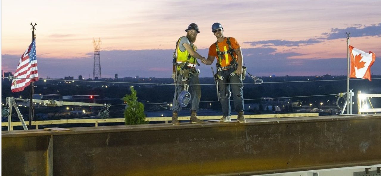 Isn’t that a cool picture at the top of the story? The guy on the U.S. side is Casey Whitson, a second-generation iron worker from Southgate, Michigan, and a member of Ironworkers Local 25. Story about U.S. iron worker. I haven’t been able to find any details on the Canadian iron worker. If you do please let me know and I will update this story.