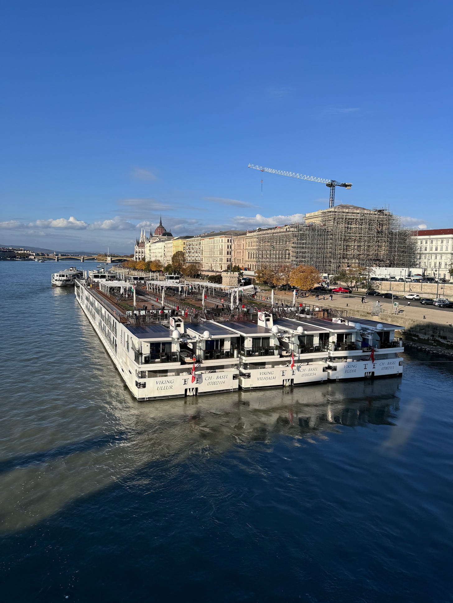 As I passed by our Hotel I realized I’d gone the wrong way! No worries. I hopped out at the next stop, then jumped on a tram going the other way. In 20 minutes we were passing over the River at Margarit Island. The next stop was it.