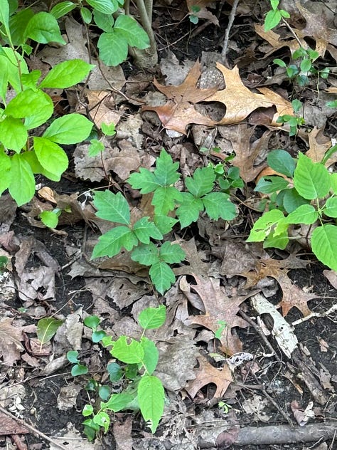 I decided it was hopeless to spray the entire stream side. We can’t eliminate all the Poison Ivy in the world! There’s only so much we can control. And if we did eliminate it all, we could have lots worse problems, like serious erosion and the loss of wildlife habitat, and probably things that we can’t even dream of now.