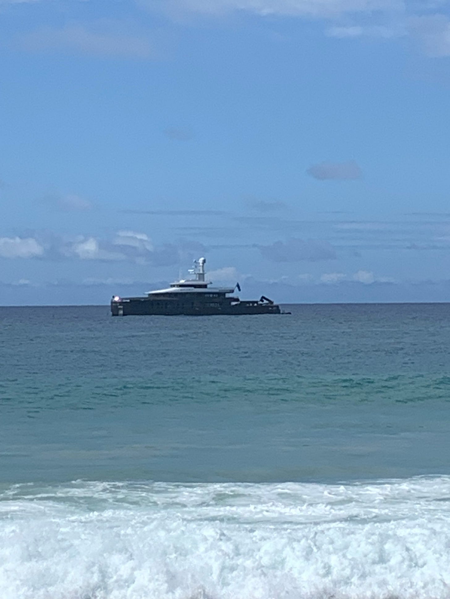 Here’s a link to a GoPro video my niece took which shows my nephew boogie boarding and the mega yacht, the 55 meter Shinkai: Boogie Boarding at Brenneke Beach. (The Shinkai carries a submarine, a helicopter, a 4x4 Land Rover, and all kinds of toys). Specifications of the Shinkai.