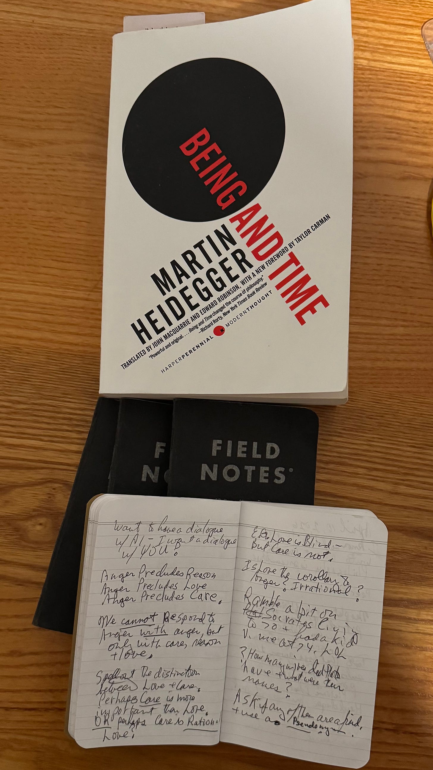 My Notebook is filled with prompts from the past week, but instead of descriptions of places and people, the prompts are of ideas and concepts that have blossomed in the sunlight of Heidegger, Plato, and others.